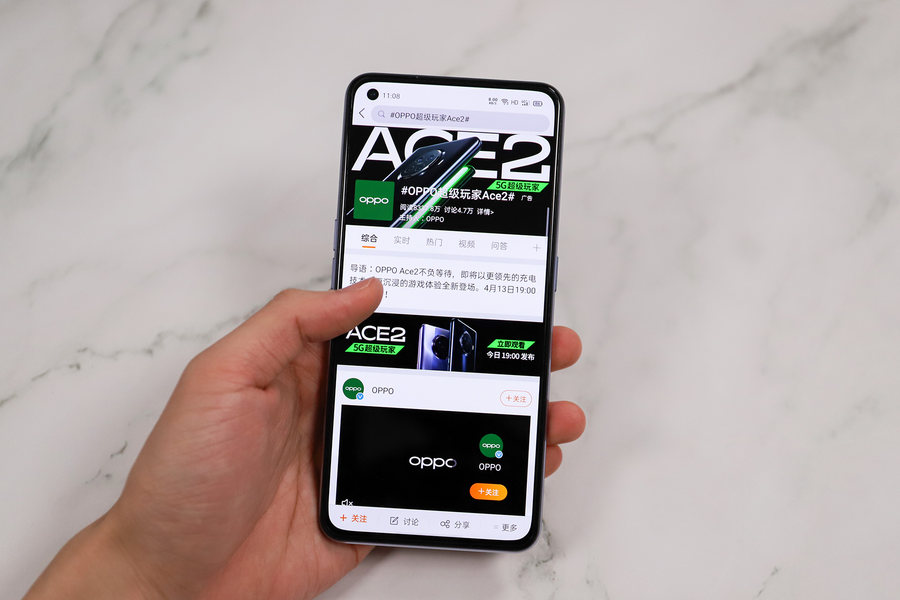 屏幕也是影响到游戏体验的重要一环,除了基础的屏幕显示素质,OPPO Ace2屏幕的90Hz刷新率和180Hz触控采样率这两项参数对游戏体验有直接的提升。