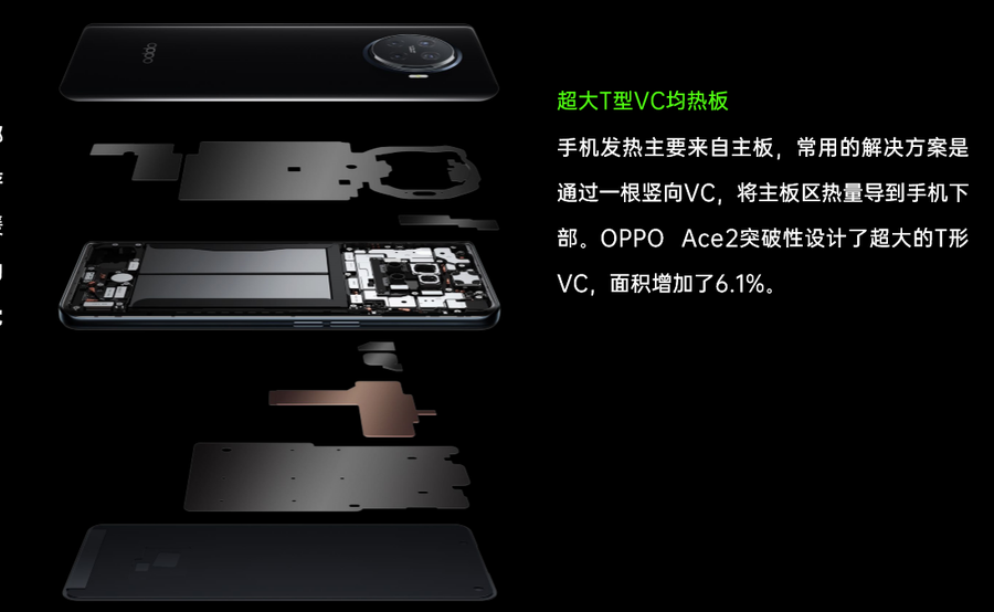散热方面,OPPO Ace2配备了4D恒冷散热系统,超大T型VC均热板+新型热缓冲材料+多层石墨覆盖,不仅能快速导出内部热量,针对短时间产生的热量,可以吸收然后再慢慢释放,玩家不会有明显的烫手感,搭配Hyper Boost 3.0优化,长时间玩游戏也能保证流畅度,延长续航时间。