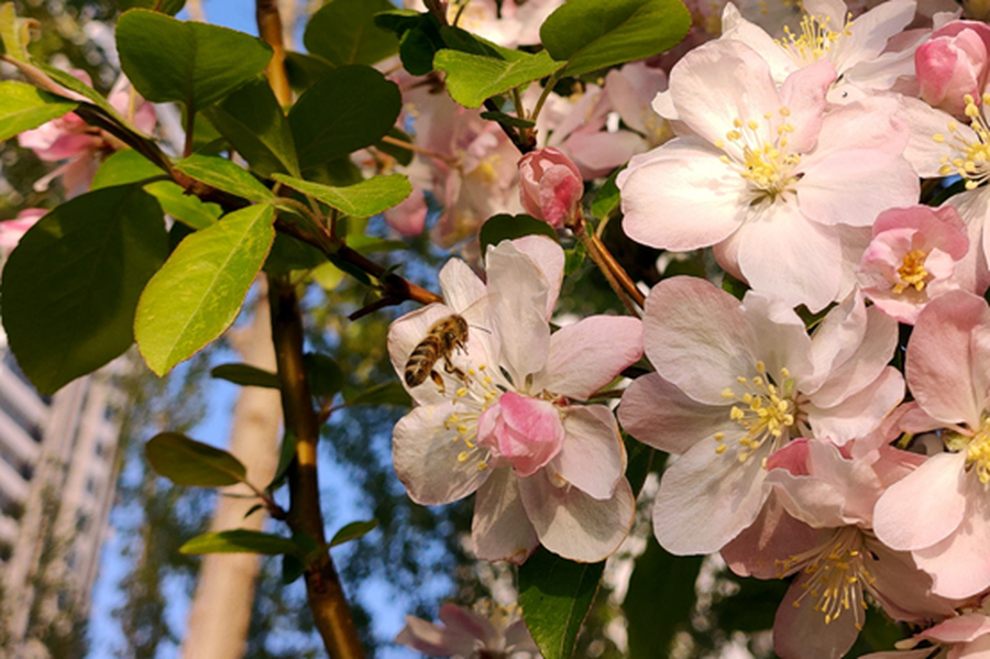 光线充足的场景,开启4800万像素模式能够获得更加丰富的细节。从样张局部裁剪后的画面可以看到,照片仍旧拥有不错的质感和细节还原,因为光线充足场景下快门速度很快,还可以清晰看到蜜蜂的翅膀,细节表现非常好。