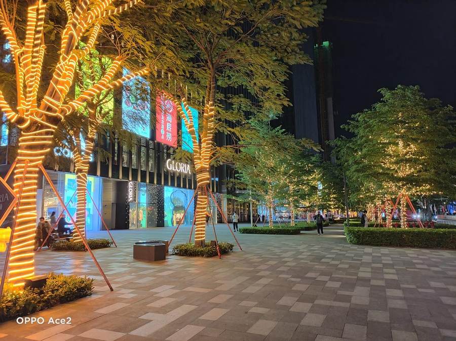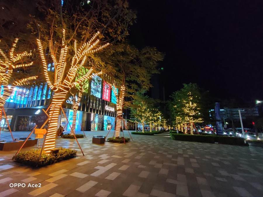 OPPO Ace2的超广角镜头也是支持夜景模式的,虽然整体宽容度比不上主摄,但仍旧能保证不错的观感,夜拍也能拥有开阔的视野。