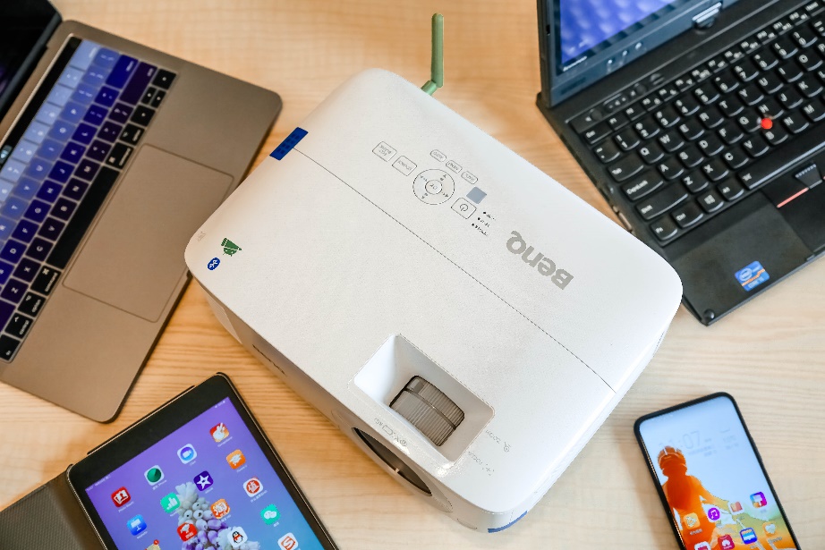 以明基BenQ推出的智能商务系列投影仪为例,系列产品都带有安卓智能系统,可以确保实现高度兼容的多平台无线投屏功能,不挑用户设备,开会自由度提升。而且相比一些依赖环境网络状况的无线投影仪,明基智能商务投影仪一律采用内置WiFi,不受环境网络影响,自主完成无线连接。