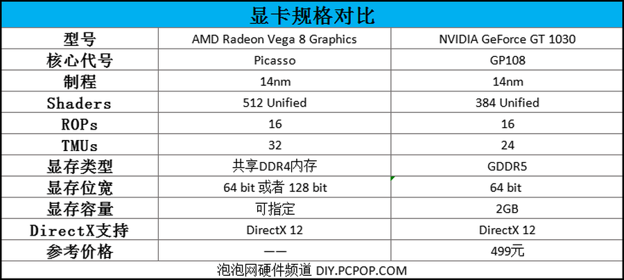 NVIDIA GeForce GT 1030是目前一款500元价位的入门级独立显卡。从硬件规格上来看,AMD锐龙3 3200G搭载的Radeon Vega 8 Graphics甚至比NVIDIA GeForce GT 1030还要强一些。