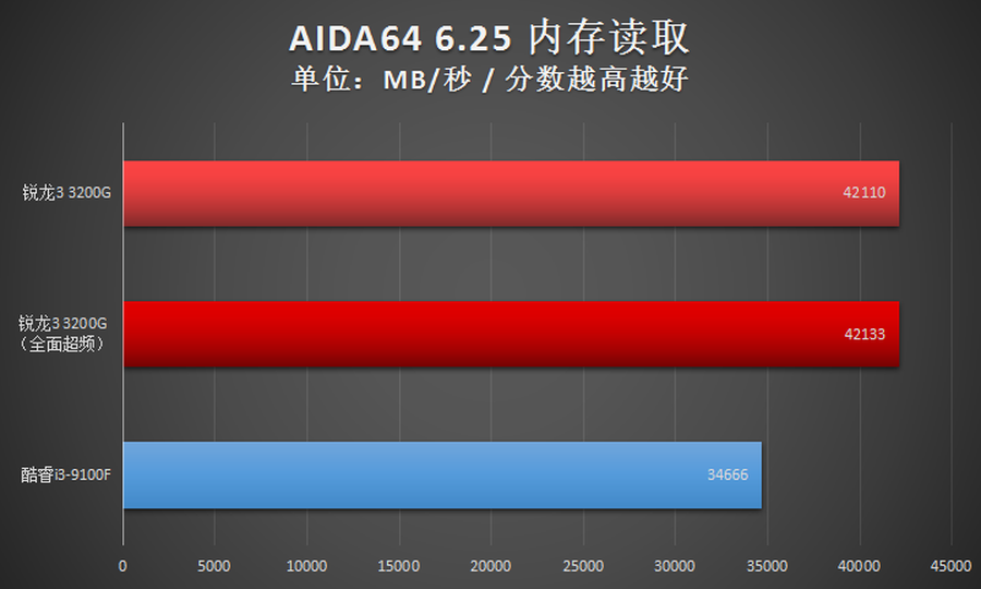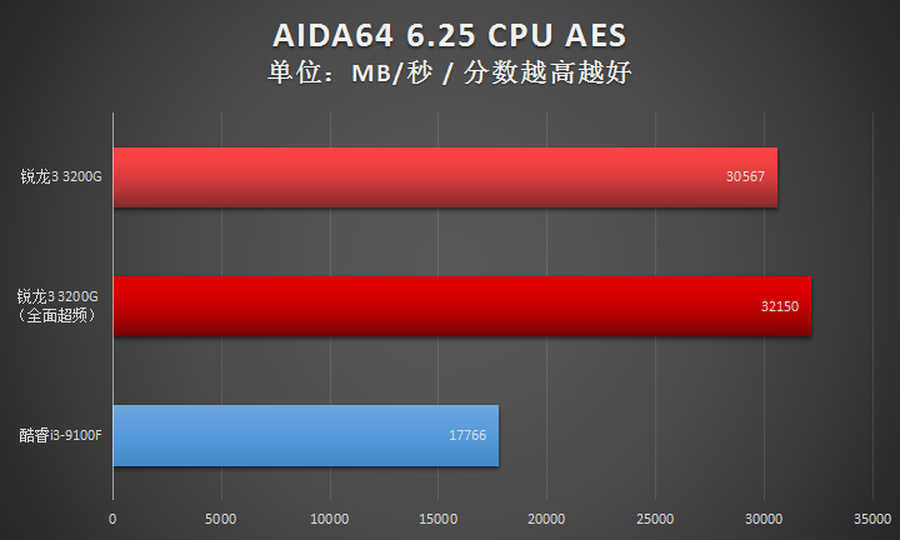 此项目,全面超频之后的AMD锐龙3 3200G处理器整体占优。毕竟AMD平台支持的内存类型更高。