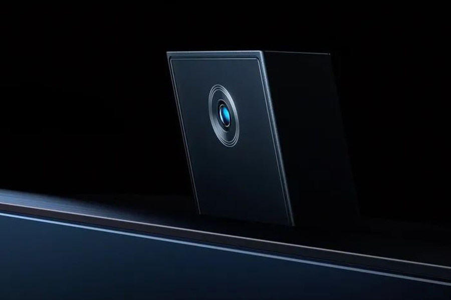其次,在强大处理器和运算能力的支持下,G71系列还具备AI摄像头,采用了行业应用级高进光CMOS传感器,单像素的感光面积高达2.24×2.24um,带来了更清晰的成像以及更精准的视觉感知,即使在弱光的环境下也能看得清,有更优异的降噪效果,低噪点的表现。CMOS上还覆盖了一块蓝玻璃红外截止滤光片,可有效防止眩光过曝。镜头采用5P1G的镜片结构,光圈大小是2.0,ISP支持3D降噪。此外,摄像头还可在5°至14°之间自动智能调节下倾角度,让用户始终停留在屏幕中央。还值得一提的是,G71的摄像头还有家庭看护功能,随时随地查看家中情况,手机与电视面对面配对绑定、电视端接收监控状态的提醒、电视端可关闭监控三重隐私安全保护机制,让用户更放心。