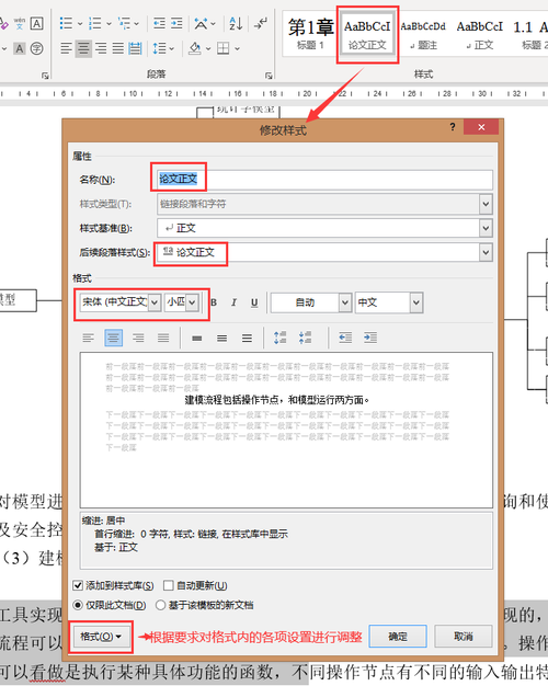 论文正文样式的设置可以通过新建一个新的正文样式,并命名为一个简单易懂的名字,如“论文正文”,然后对这个新建的样式进行格式调整,如对字体,段落的调整。