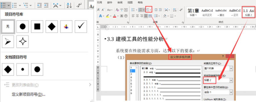 其次,Word提供了丰富的项目符号以及层级清晰的多级编号,这些符号和编号的使用可以让论文看起来更直观,让审稿人快速抓到你的论文重点,提高你的论文在审稿人心目中的印象分。