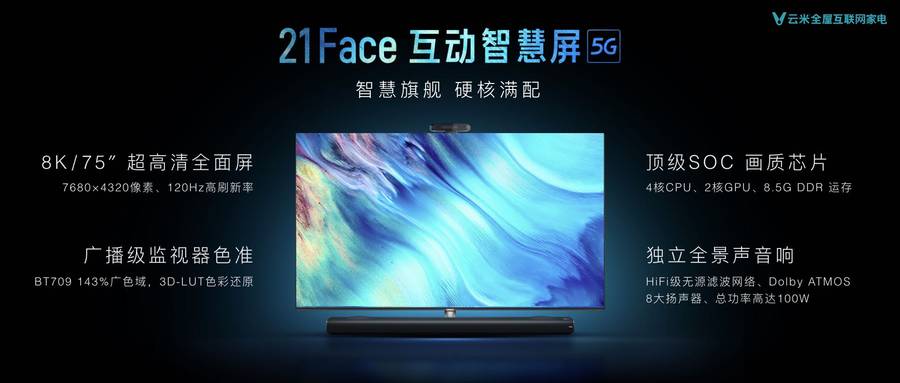 继全球首台5G大屏冰箱、全球先进混合组网VIoT 5G CPE后,云米又一款5G IoT战略新品全球先发亮相:全球首台5G客厅智慧大屏——21Face互动智慧屏(5G版),以三大王牌颠覆传统客厅大厅,重新定义了用户和家的关系。