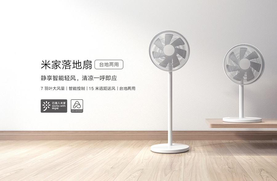 米家落地扇是小米发布的先进交流电机风扇。米家落地扇拥有 7 羽扇叶,高风量高达 27 立方米/分钟,低噪音值38dB(A),最远送风距离长达 15 米。在大风量的同时,米家落地扇也比较省电,每天电费低至 1 毛钱。支持台地两用,满足多场景使用需求。在风格上,米家落地扇延续极简设计,高颜值百搭。米家落地扇可设置智能睡眠风模式,入睡前辅以大风量;睡熟后自动降低风速,避免大风量直吹着凉。