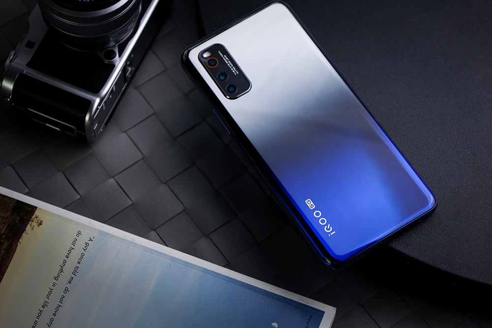 外观上,iQOO Neo3共有夜幕黑和青空蓝两种配色可选。评测机为夜幕黑配色,机身背面为镜面效果,上半部分为银色,下半部分为带有光影变幻的深蓝色,整体时尚且有特色。