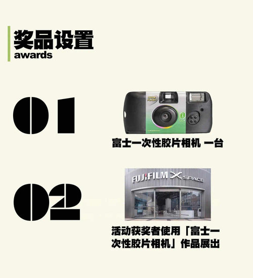 入选者将可以获得富士一次性胶片相机一台,用它拍摄的作品还将在富士X-SPACE展厅线下展出!