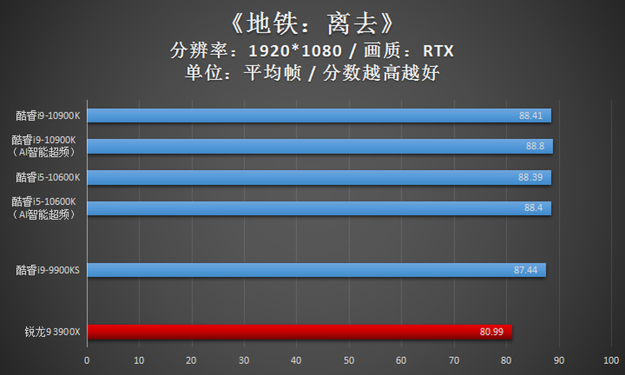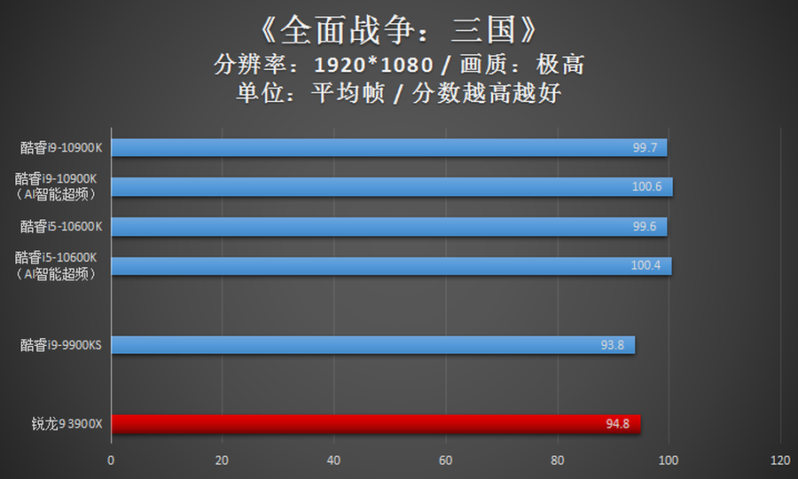 此外,即使是酷睿i5-10600K这款中端CPU,其游戏性能也已全面优于上一代旗舰级的酷睿i9-9900KS。