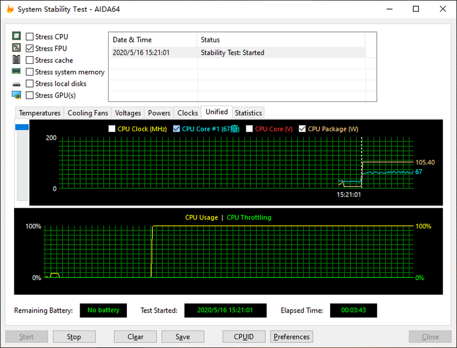 利用AIDA64 FPU烤机测试,还能够了解CPU的满载温度表现。
