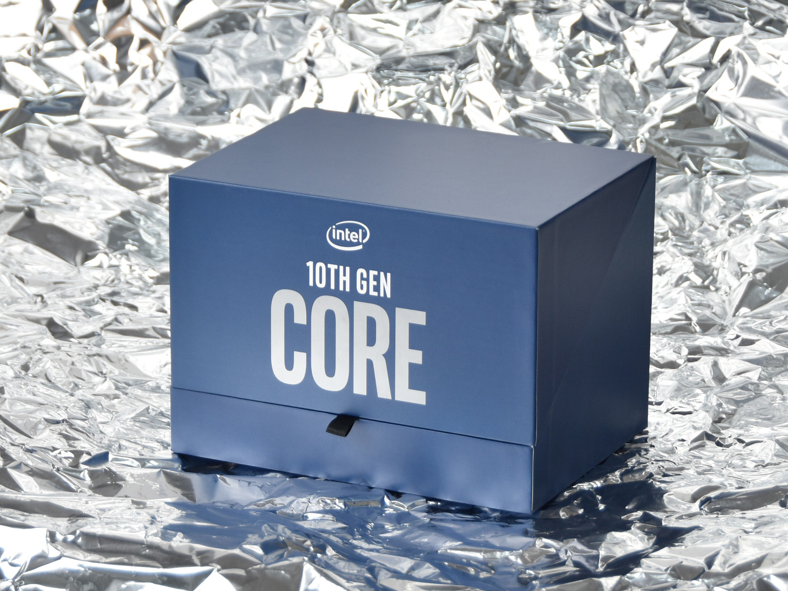 此次CPU先发评测,我们泡泡网收到的是英特尔定制款CPU套盒。该套盒采用蓝色外观设计,正面标注有“Intel 10TH GEN CORE”的字样,翻译过来就是“英特尔第十代酷睿”的意思。