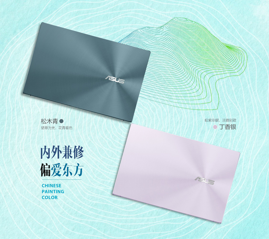 华硕灵耀14笔记本曾荣获2020年红点设计奖。其拥有精心调配的松木青、丁香银两种配色,与偏心同心圆纹理巧妙融合,简炼线条勾勒当代经典国潮感,尽显优雅的轻奢商务风范。并采用14英寸全金属机身设计,重量约为1.1Kg,机身薄至13.5mm,约A4纸大小的机身轻巧灵动,可轻松放入公文包,日常上班携带丝毫没有负重感,出差旅行也能解放行李空间,用户还可以在旅行途中拿出灵耀14进行远程办公,丝毫不会影响项目进程。