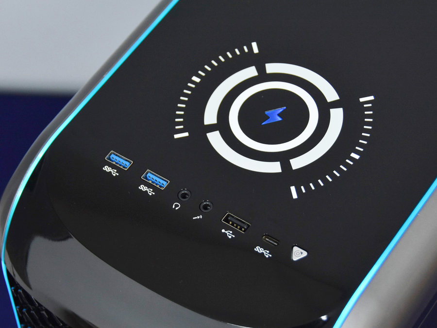 2.0,一个Type-C接口和耳机,耳麦接口,另外顶部的蓝色闪电标记可不是装饰,而是搭载了QI无线充电模块,支持无线充电手机,耳机等数码设备充电,右边的小型三角按键,则是一键超频模式。