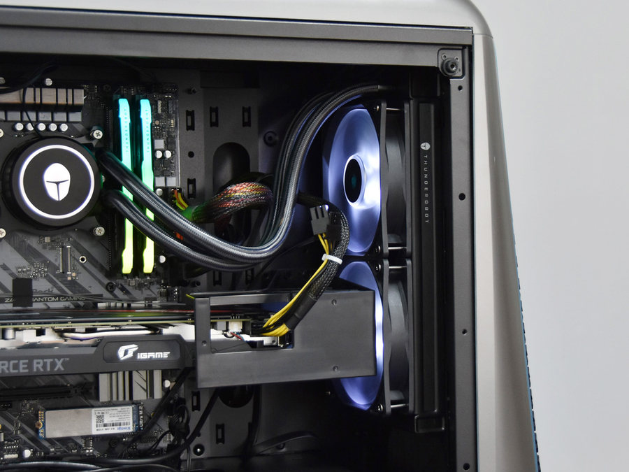 为了满足超频玩家,雷神240mm一体水冷的搭载也是必不可少,将冷排安装机箱前端,为全息风道的形成打下基础,有效提升散热效率和降噪能力。整体采用第二代的分区水冷散热方案,将显卡,CPU,硬盘分离进行散热,减少两者之间发热量的互相传导,降低传热渠道,保障高性能的输出。