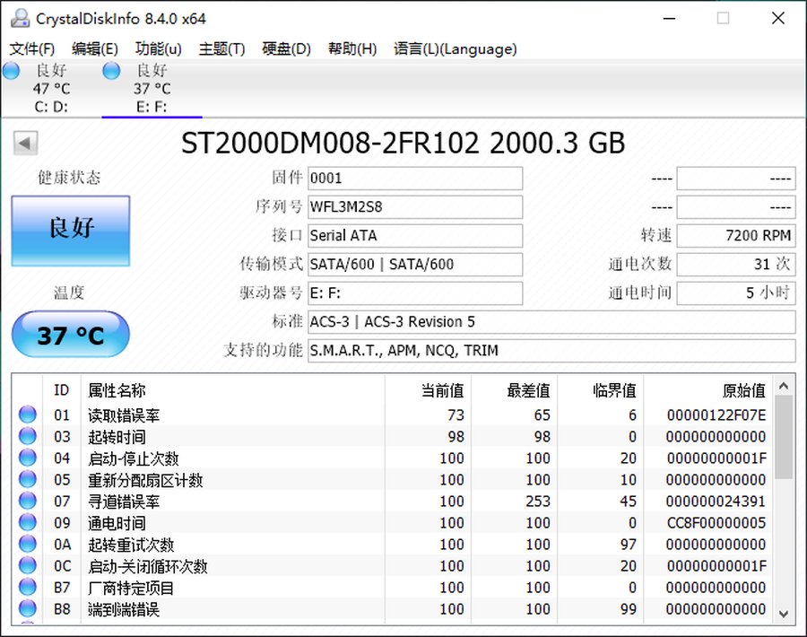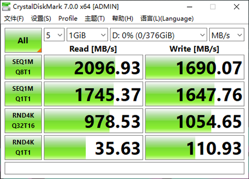 NVMe固态硬盘,容量和速度的双重兼顾。从CrystalDiskMark的实际测试中,我们不难发现顺时读写速率达到2.0GB/S,写入速度也大幅度提升,达到了1.6GB/s.