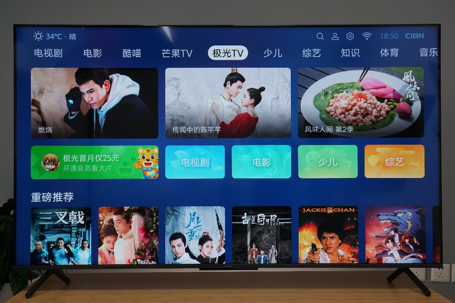 在软件部分,荣耀智慧屏X1搭载鸿蒙系统,系统界面简洁直观,上手难度低。可以在主界面左右滑动浏览不同的内容板块,系统直接提供了常用的电影、电视剧、纪录片、综艺等板块,可以很容易找到想要观看的内容类别。界面滑动非常流畅,没有出现卡顿的情况。