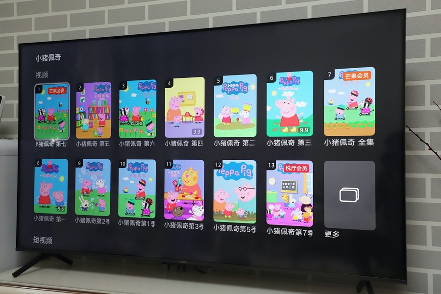 荣耀智慧屏X1的视频资源包含了丰富的少儿节目,像《小猪佩奇》这些小朋友们喜欢看的动画都能找到,并且不少内容都可以免费看。