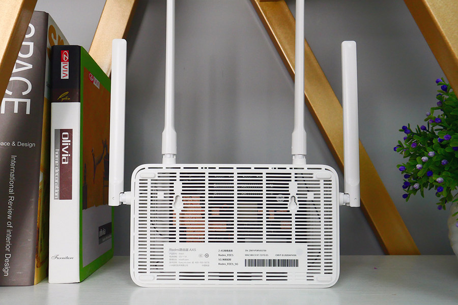 Redmi路由器AX5机身采用了大面积的镂空设计,可以将机身内部的热量更快的散发出去。