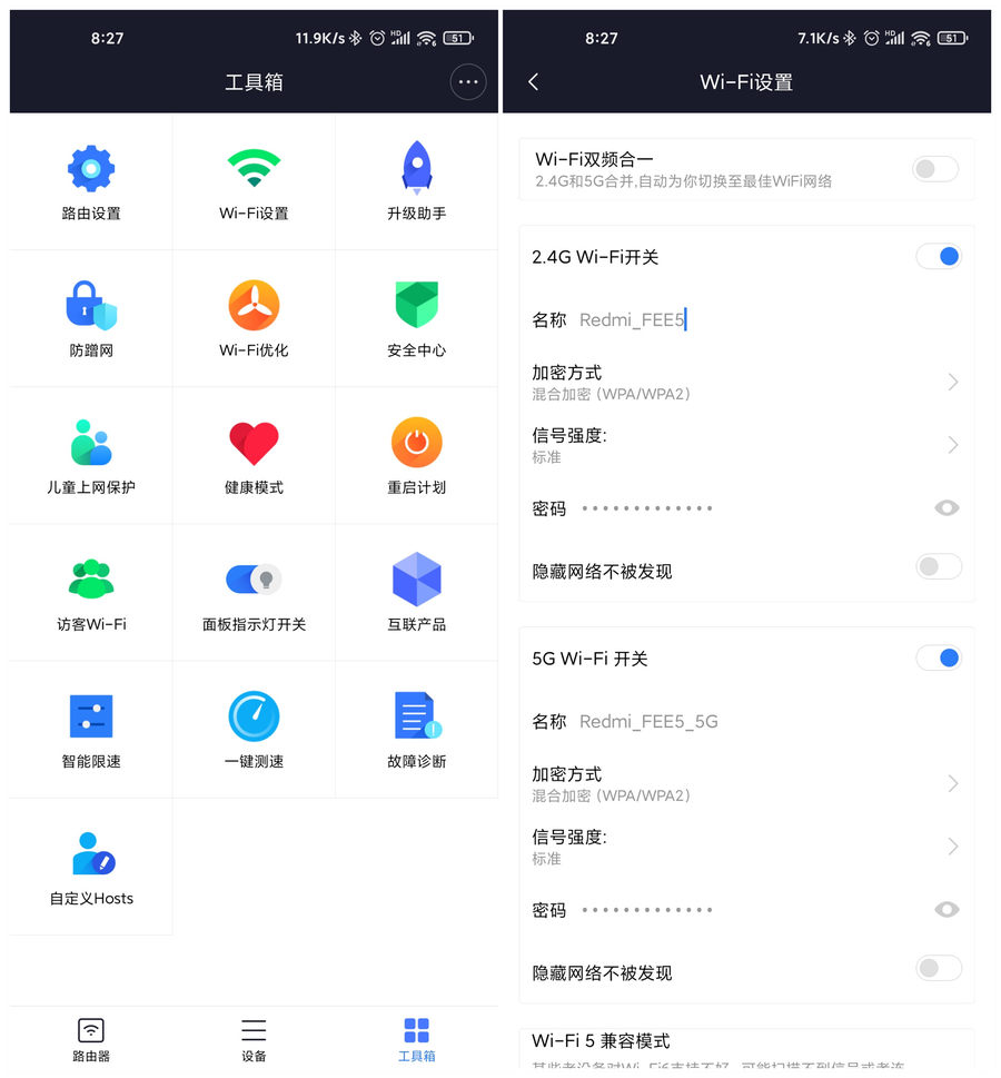 Redmi路由器AX5支持OFDMA、MU-MIMO等技术,能够保证网络的稳定和快速。同时官方表示在7月15之前将会推送系统升级,从而支持多台Mesh组网,让大户型的网络覆盖更广泛。