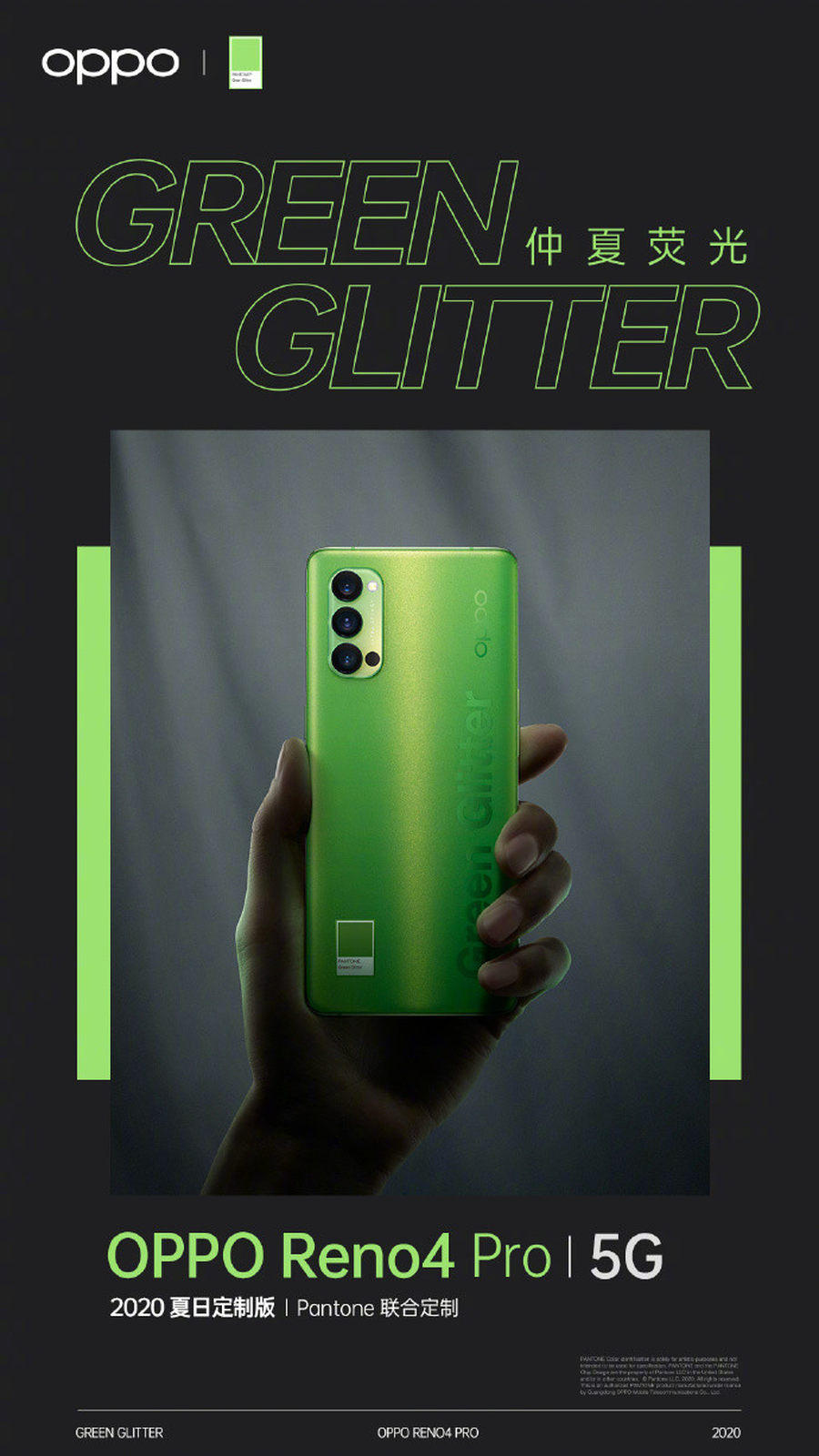 2020年6月18日,OPPO Reno4 Pro 2020夏日定制版正式开售,OPPO邀请Pantone共同打造夏日限定色Green Glitter 仲夏荧光,持续引领色彩趋势。OPPO Reno4 Pro 2020夏日定制版售价4299元,用户可在OPPO体验店、三大运营商营业厅、苏宁、迪信通、国美、乐语、顺电等各大卖场购买,也可以在OPPO官方商城、京东、天猫等线上平台购买。