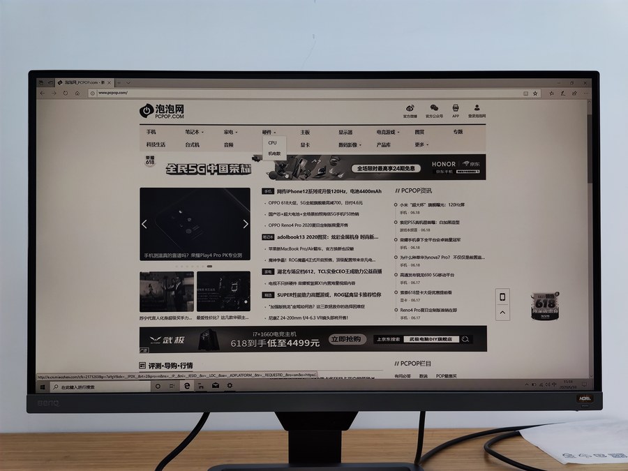屏幕下边框右侧设计有明基HDRi的标志,以及一枚HDR模式快捷键。这款显示器特别搭载了明显自主研发的HDRi专业处理芯片,可抓取并优化画面,在防止画面过曝的同时,保留暗部细节,相比主流的HDR技术更具特色。