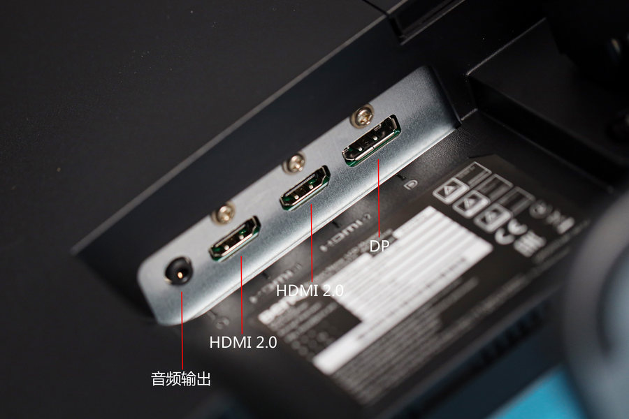 除了电源接口,它的机身背面还设计了两个HDMI接口、一个DP接口、一个音频输出接口(用于连接耳机或者音箱)。