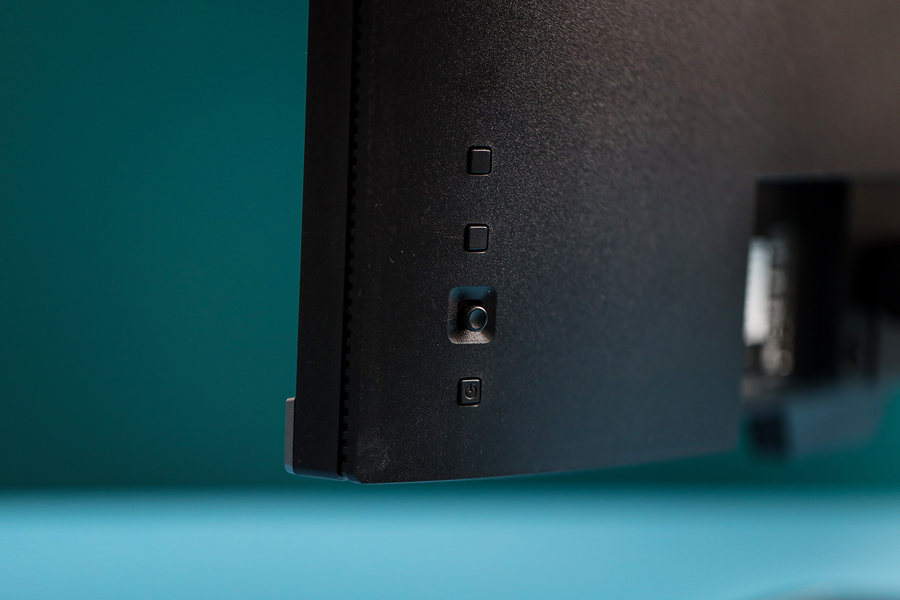 它的机身背面左侧设计了四枚按键,从上到下分别为色彩模式按键、信号源切换按键、主控摇杆按键、电源键。