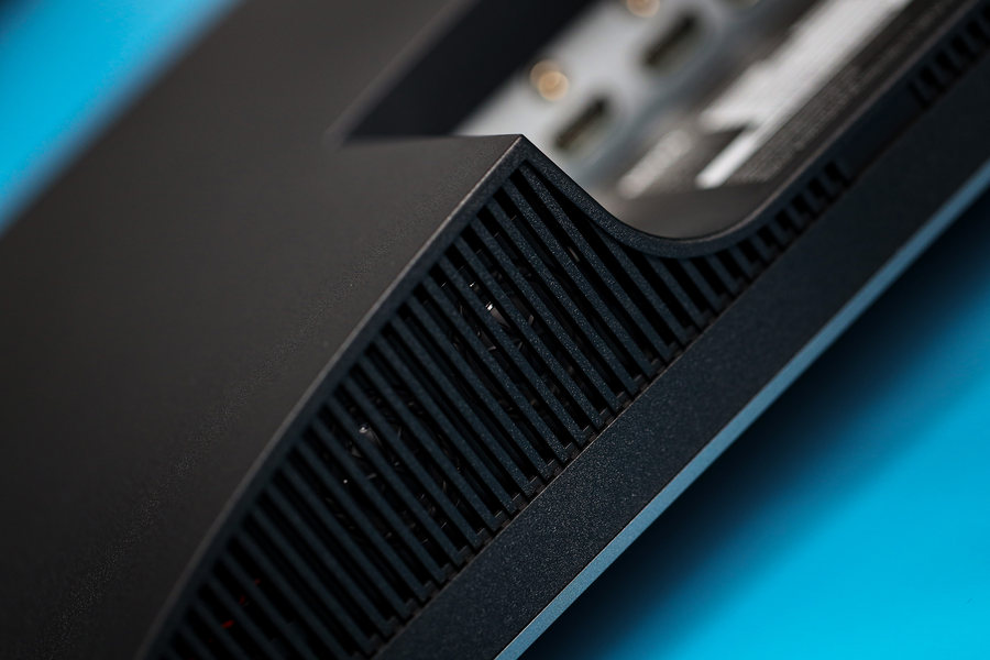 屏幕边框下方设计了一对5W音箱,其支持treVolo专业音效,表现力不错,低音比较强劲,很有震撼力,在显示器内置音箱当中属于很棒的了。