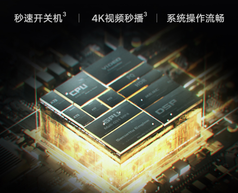 荣耀智慧屏X1搭载鸿鹄818智慧芯片,四核CPU+四核GPU组合,内置AI魔法画质引擎,支持MEMC运动补偿,还能实现8K超高清视频解码,呈现更好的画面效果。
