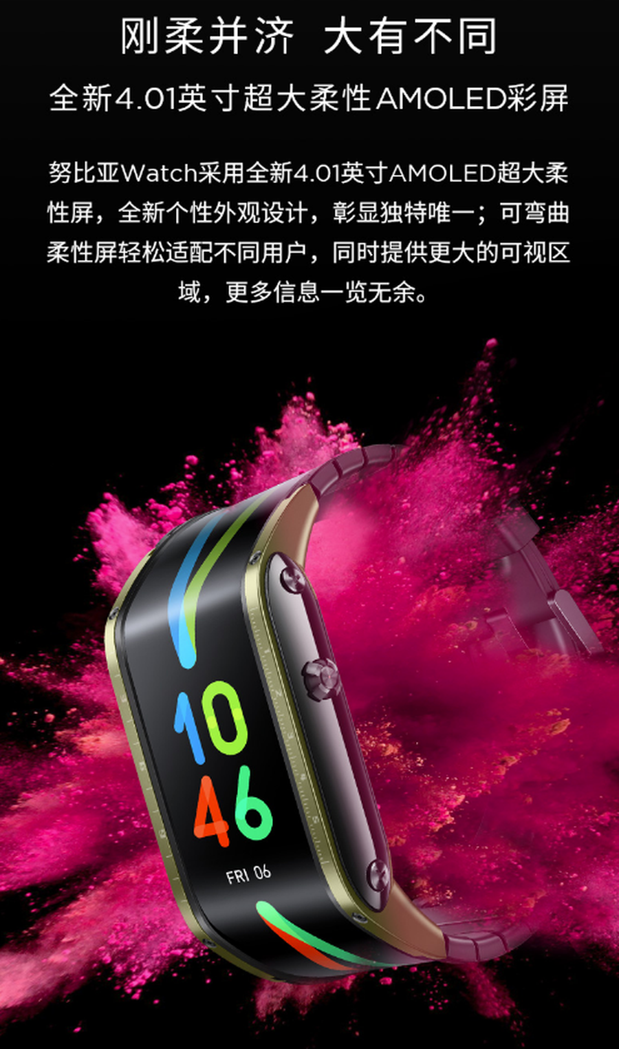 7月29日消息,昨晚努比亚举办红魔品发布会,正式发布红魔5S以及一系列相关游戏、充电配件。除此之外,努比亚还发了一款特别的智能穿戴设备——努比亚Watch柔性屏手表。
