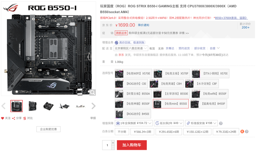 最后为玩家推荐能量爆棚的ITX小钢炮华硕ROG STRIX B550-I GAMING主板,其一经发布就创造了B550主板世界内存超频纪录,近期更是以DDR4-6234成绩拿下AMD平台内存世界超频冠军,再次证明超强实力,优异是玩家打造B550小钢炮平台的明智之选。目前京东售价1699元,还有三期免息。