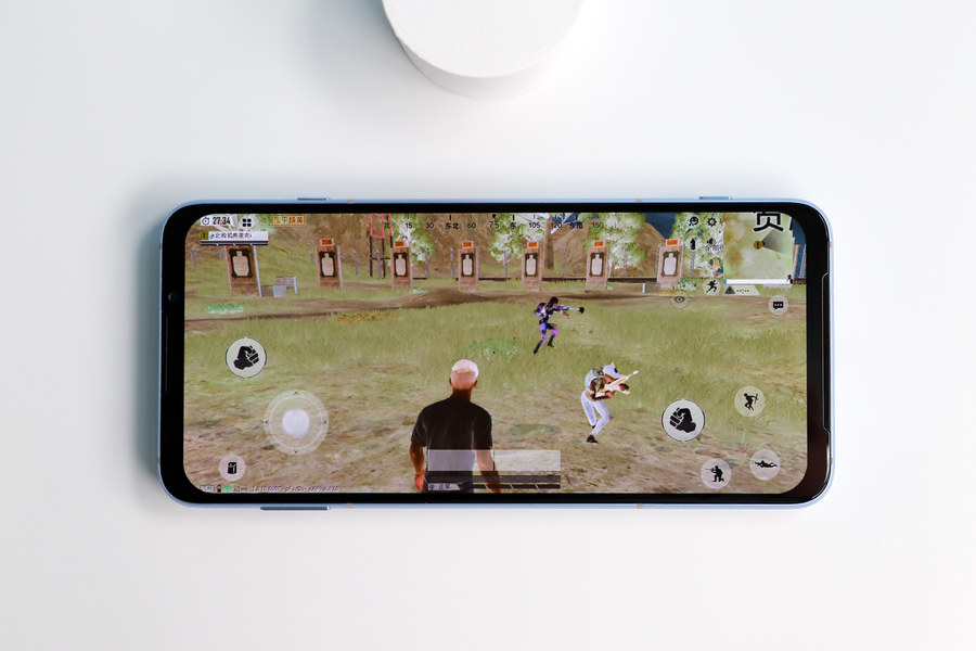设置好双区游戏压感功能后,在游戏中通过双指就能实现四指操作。在移动的时候,用力按压就能实现开火,操作灵敏,按压操作还会伴随着震动,操作体验好。在双区压感功能的加持下,开枪同时可以轻松进行移动,仿佛有外设加持一般。