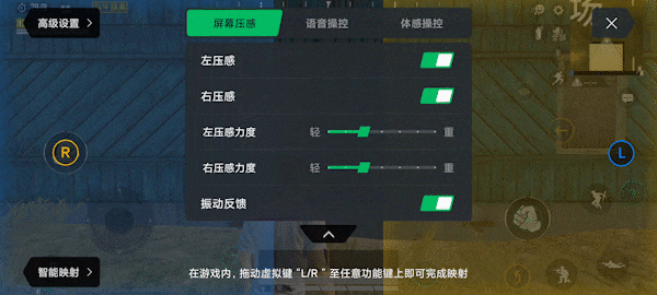 双区游戏压感功能备受玩家喜欢,在游戏助手的操控中心可以开启屏幕压感功能,分为左右两个压感区域,等于可以代替两个按键操作。用户可以自定义压感按键的功能和压感力度,映射对应的功能操作。在《和平精英》游戏中,还可以通过智能压感映射功能快速设置,上手简单。
