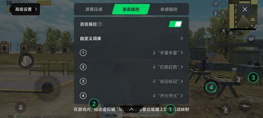 另外黑鲨3S还支持语音操控,系统自带了常用语音词汇。在《和平精英》游戏中,手雷、开枪等操作可以直接通过语音进行。比如说“手雷手雷”就能切换到手雷,同时还支持玩家自定义词汇,可以实现不一样的游戏功能,也支持通过语音完成截图、音量、屏幕亮度调节等功能。当然,语音操控功能可能更适合独自玩游戏时使用,在人多的地方使用可能有点尴尬。