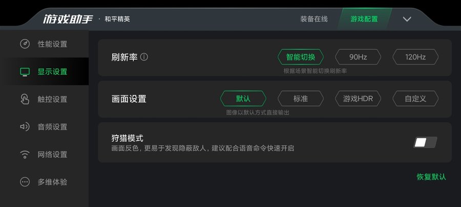 游戏空间设置也可以在游戏中通过侧滑拉出,可以修改不同的画面设置,支持游戏HDR模式。开启游戏HDR模式后,黑鲨3S会增强游戏画面对比度,色彩更加鲜艳,游戏画面会更加生动,玩家可以根据自己喜好开启。