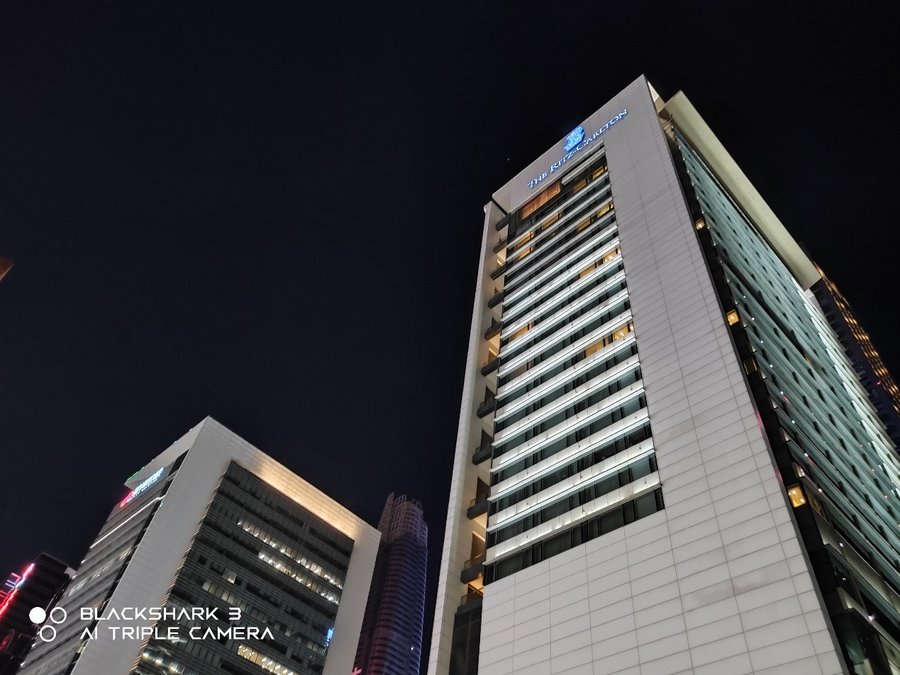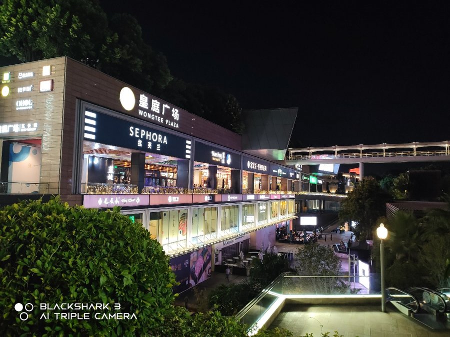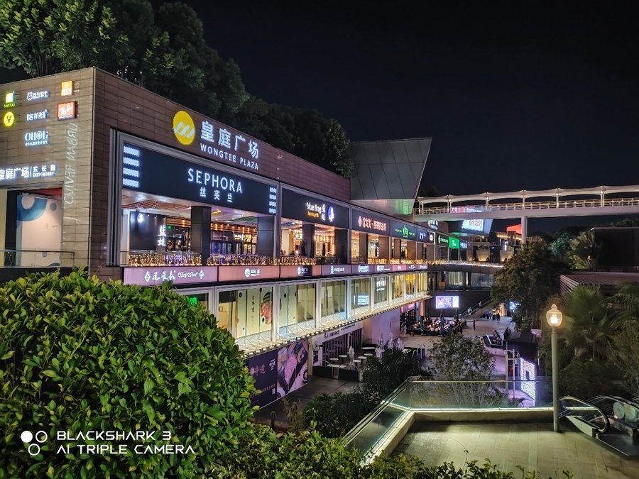 在夜拍方面,黑鲨3S支持夜景模式,夜景模式下提升明显。夜景模式下,画面高光部分表现有很大提升,高光细节更丰富,灯箱的色彩也能真实还原出来,夜景模式下画面更加纯净。