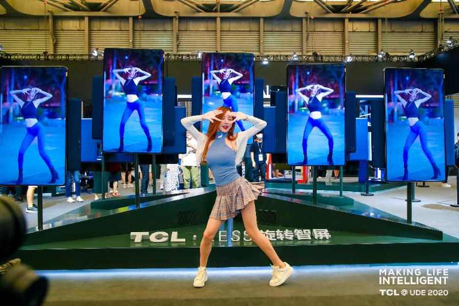 在TCL·XESS旋转智屏竖屏模式下,能够以更开阔的视野刷短视频、跟随健身指引等,通过内置的升降式摄像头,可以实现拍短视频、进行视频通话等。在展会现场,TCL邀请了抖音达人YANA掀起抖音达人挑战赛,通过旋转智屏学跳热门手势舞蹈,点燃现场气氛。
