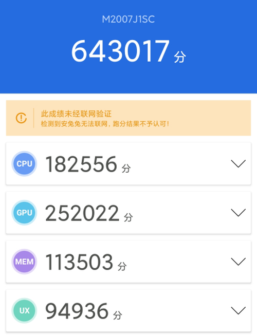 小米10至尊纪念版采用了骁龙865移动平台,拥有16GB LPDDR5内存以及512GB UFS3.1的存储空间,对于这样的硬件配置也是目前优异旗舰的配置,经过测试软件测试,小米10至尊纪念版的最终成绩达到了643017分。