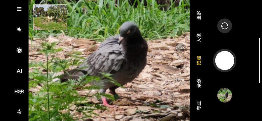 当手机的变焦超过15倍后,在画面中会出现一个取景框,便于我们更好的进行长焦的取景与对焦。