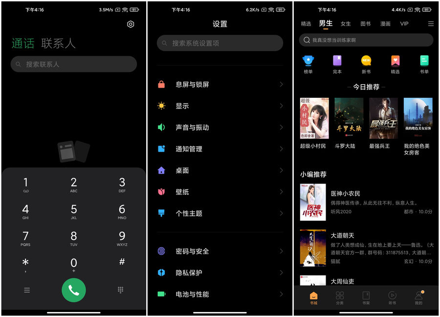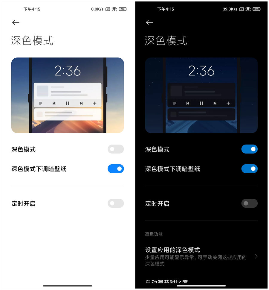 在深色模式模式下,手机内的界面都会进行调整,更适合夜间使用。