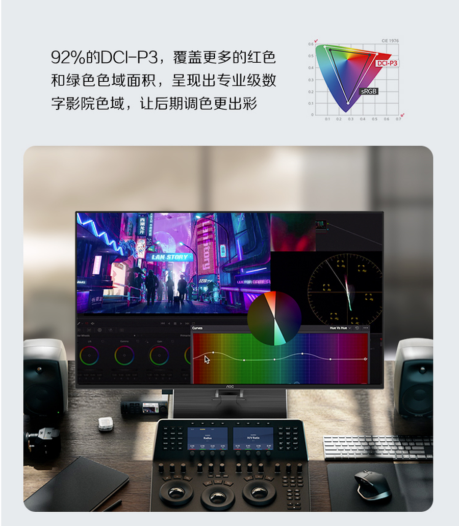 2K分辨率与HDR的加持,即使素材亮度反差极大,也能轻松呈现出过曝区域细节层次,特别针对红绿色域进行特别优化,92%的DCI-P3,具有更好的色彩表现能力,表现出的画面色彩更接近我们的人眼可接受的色域,设计人员可以调配更丰富的色彩,游戏玩家可以在感受到更逼真的色彩效果。