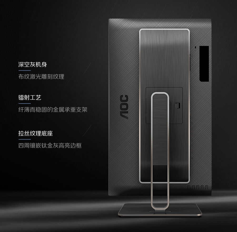 AOC Q27U2D作为专业设计显示器,自身颜值同样过硬,更荣获了reddot winner2020红点奖。深空灰色激光雕刻布纹纹理,搭配钛金灰色边框,让它本身也成本办公室里的“艺术品”。