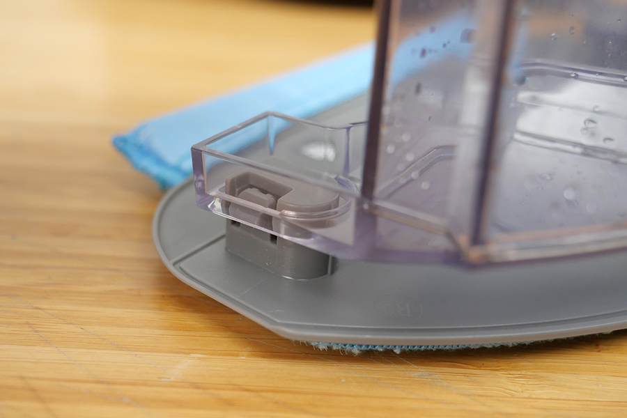 取下水箱非常方便,只需要按住卡扣就可以单手拿下水箱进行加水操作。抹布支架与水箱也是采用卡扣的方式进行连接,先进使用的时候需要安装抹布支架。