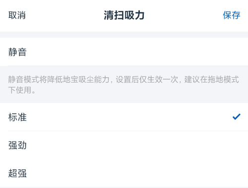 科沃斯DEEBOT N8拥有三档吸力调节,分别为600/1200/2300,高2300Pa的吸力已经足够日常家庭使用。平时我们日常频繁清扫地面的话,也可以使用低档的风量。