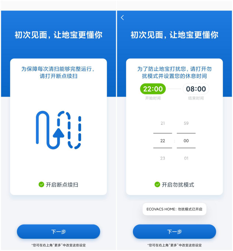 科沃斯DEEBOT N8支持断点续扫以及免打扰模式,在清扫方面更加人性化。