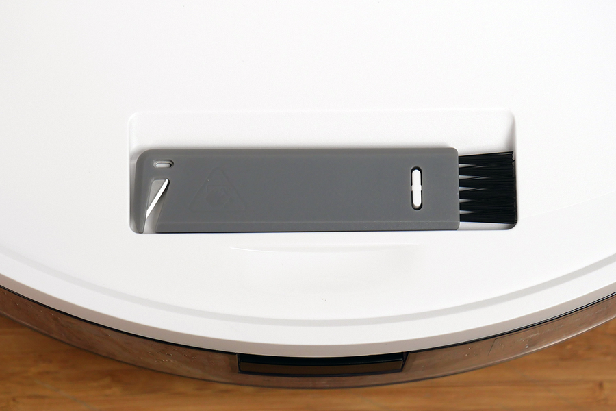 科沃斯DEEBOT N8也配备了清理小工具,刷头可以清理尘盒及机身缝隙内的灰尘,而另一侧的刀片可以割断缠绕在滚刷上的线头及头发,可以很方便的对滚刷进行打理。