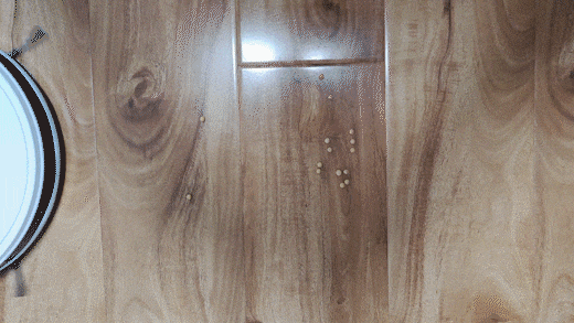 而在清理大豆时,科沃斯DEEBOT N8的两个边刷会将大豆全部聚拢在中间部分,科沃斯DEEBOT N8走过可以轻松的清理干净。