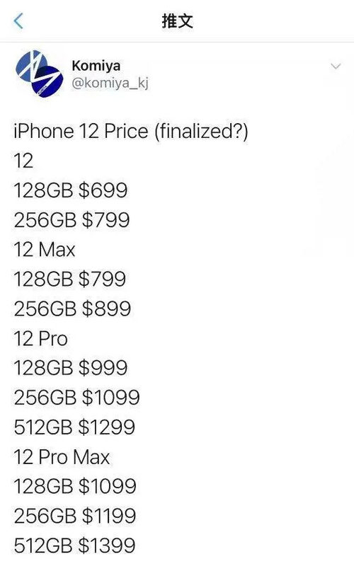 可以看到,价格几乎与iphone 11系列持平,至于发售时间,iphone 12系列可能会在十月底正式发售,iphone 12 pro系列或将延期至十一月才能交货。